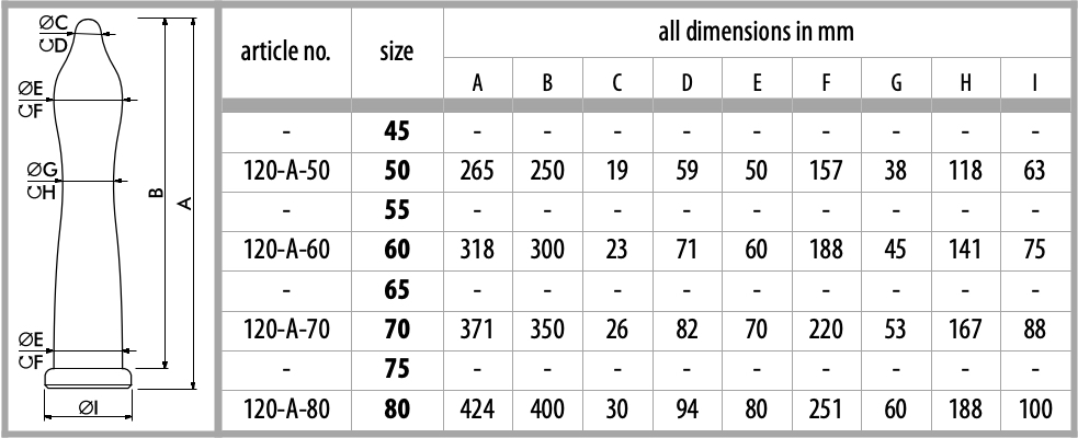 You can find more information about the sizes in the measurement table. You can find out more about our silicone and the hardness levels here and you can see our colors in the color palette.